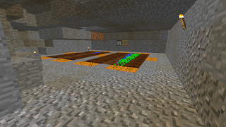 The other thing I did was set up a simple carrot farm. For the first time in about three months I actually played Minecraft on my desktop. The laptop I've been using is woefully troubled by sounds. Whenever the game needs to load a new sound file, such as a Creeper hiss, the entire game will lock up for as long as a few seconds. This has on more than one occasion led to a Creeper exploding in my face. That's what happened today. So I took a copy of my map and put it on my desktop. The game experience was wayyy better. On to the carrot farm.